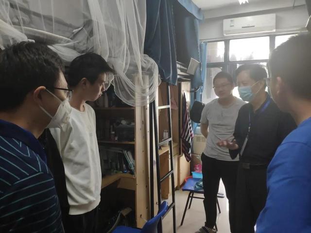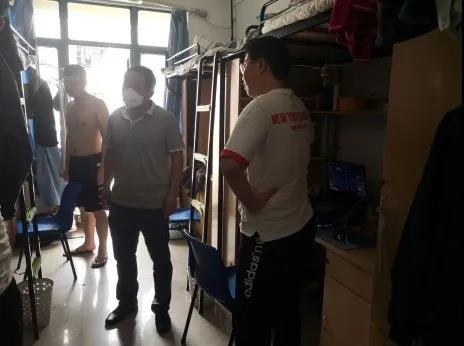 林柏泉老师和陈裕佳老师一个接一个地访问学生宿舍,检查宿舍的卫生情况,询问同学们近期的学习状况。两位老师特别强调要以积极地心态面对此次疫情,及时调整心态,在艰难时刻也要把学业放在首位。两位老师充分肯定班级的学风和舍风,鼓励大家继续努力。同时两位老师对班级中的有困难、有问题的同学给予特别关注,并提供帮助。男生宿舍检查结束后,两位老师在三食堂广场处访问了班级中的女同学。