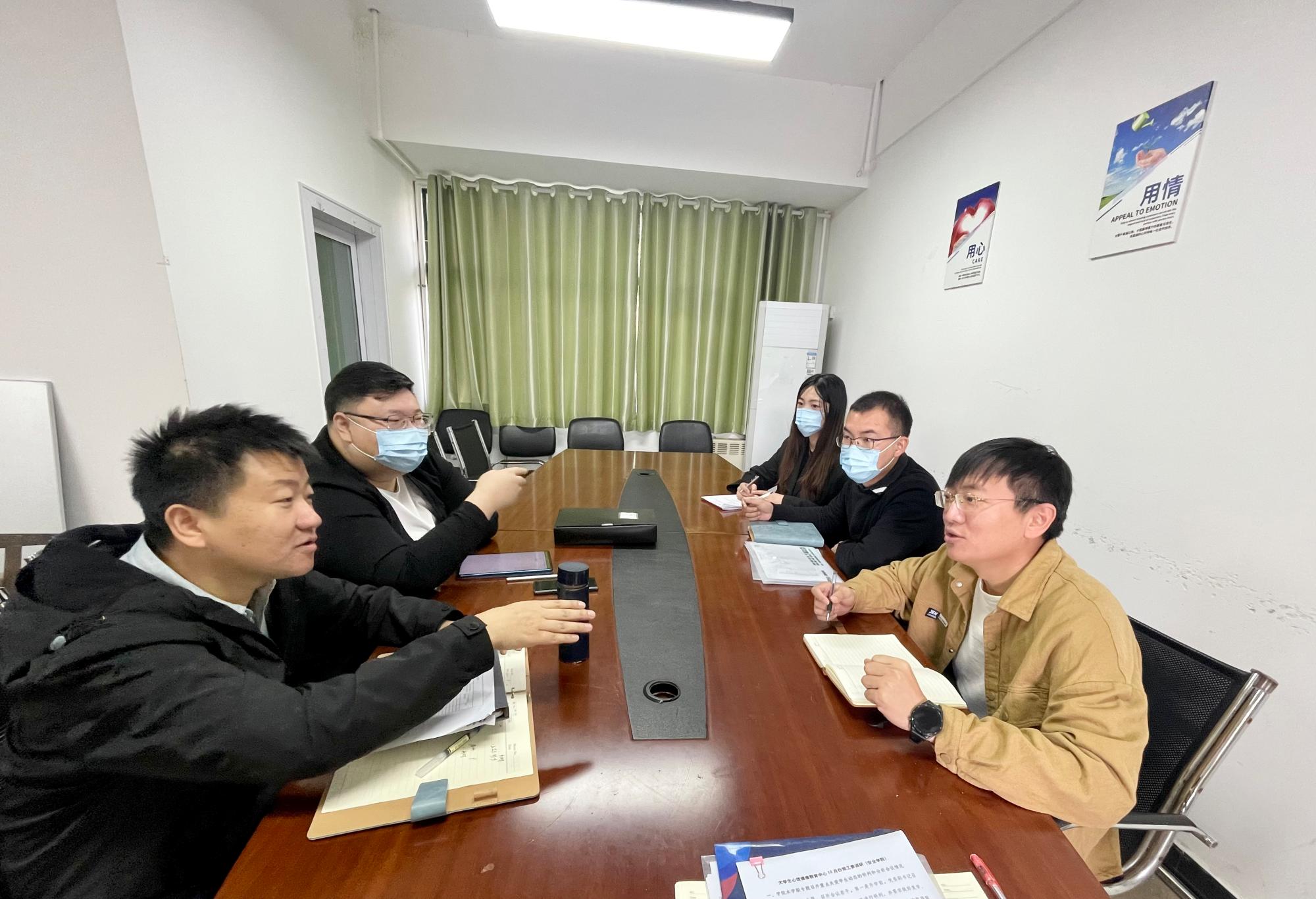 心理工作的开展情况进行了详细介绍。胡泊老师对学院的心理健康教育专项工作提出表扬和肯定,并就开展心理健康教育工作中遇到的问题和难点进行了交流,提出了一些有针对性的建议。胡老师建议辅导员要紧跟时代步伐,充分了解当代大学生的心理特征,做到因人而异、因材施教,不断完善工作细节,保证工作的连续性和针对性,真正做到一人一档,一生一策。最后胡泊老师与学生代表开展座谈会,同学们积极发言,围绕学院目前心理健康教育工作及活动展开交流讨论,为学院心理健康教育发展建言献策。
