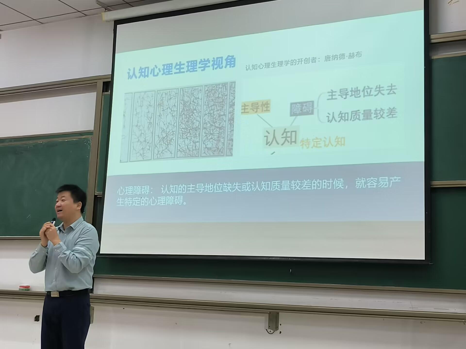 邀请校大学生心理健康教育中心胡泊老师于博四B201为大家举行心理健康教育专题讲座。辅导员赵厚宽、杜肖肖及全体22级学生参加本次讲座。