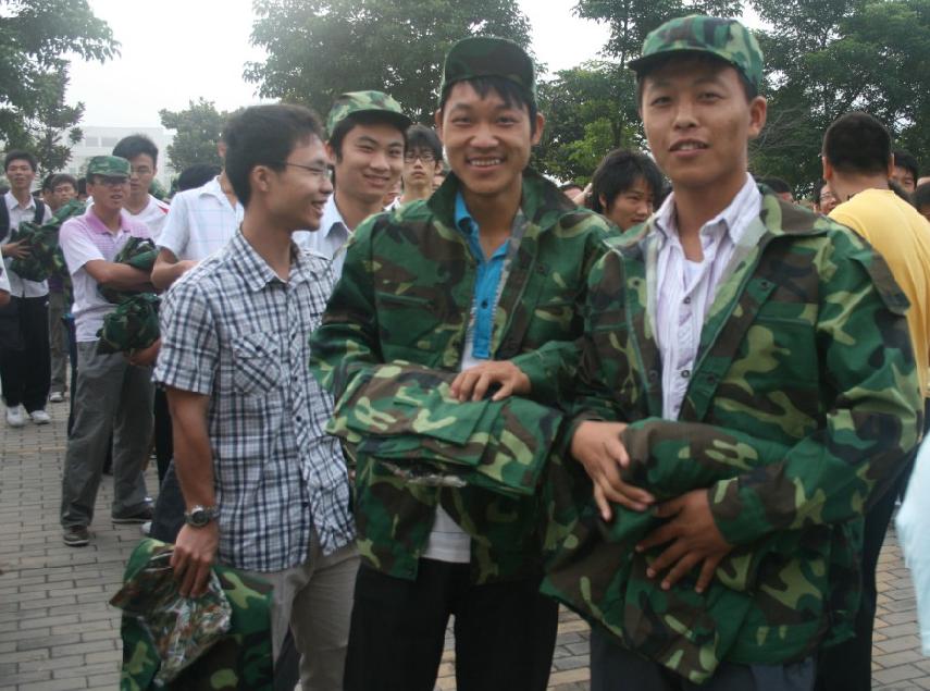 许多新生在领取军训服装后都迫不及待的将帽子端端正正的戴上,甚至连外套都穿好,他们的笑容和言语显示着喜悦与激动的心情。一位刚穿上军训服装的男生认真的告诉记者:“男儿都有个军人的梦想,穿上这身迷彩,我就自觉地把背挺得更直,把头仰得更高,要向军人的精神和气质靠拢!”而换上戎装的女生们,更是展现出“巾帼不让须眉”的英姿。