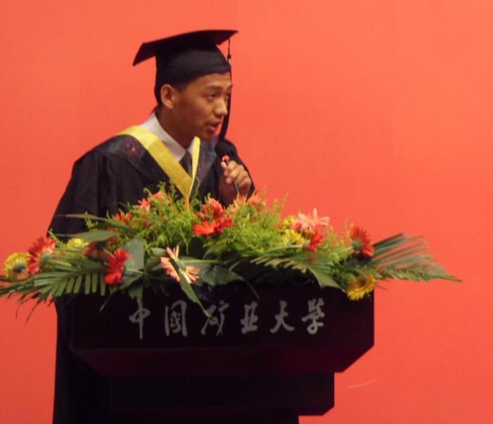 领导亲切为129位获得学士学位的的学生拨穗,每位学生光荣领取学士学位证,并与王院长一一合影留念。接下来,章毛平书记宣布了“优秀毕业生”称号、“志在四方”基层就业先进个人、研究生优秀毕业生论文推荐的获奖名单。学院领导分别为获奖学生颁奖。颁奖过后,毕业生代表张飞、在校学生代表学生会主席江大鹏分别做了发言,教师代表周福宝也表达了教师对毕业生的殷切期望和美好祝福。王德明院长为毕业生赠送四个词:“激情 慎思 好学 力行”,希望每位毕业生都能严格要求自己,在今后学有所成,成为国家的栋梁之材。