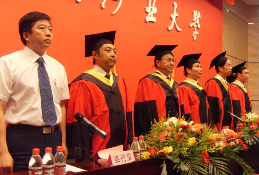 党委书记章毛平、院长王德明、党委副书记李金明、科研副院长林柏泉、教学副院长李增华、教授委员会主任蒋曙光教授以及129位毕业生和韩国三级