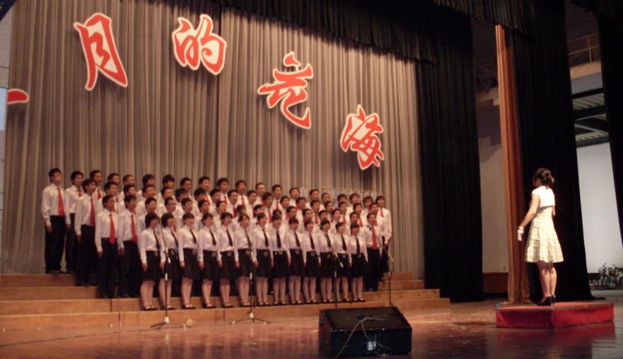 校歌》和共青团团歌《光荣啊,中国共青团》,合唱队员们声音洪亮,整齐划一,激扬的歌声和优美的旋律赢得了评委和现场观众的一致好评和阵阵掌声。尽管韩国三级