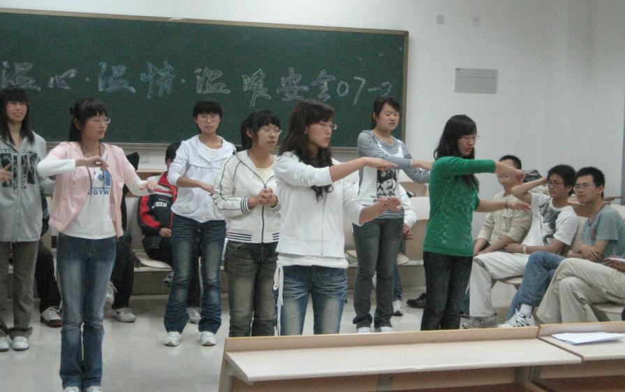 安全07-2班在集体送贺卡、写祝福之后,于2009年5月20日晚在公教五A201举办了“温馨・温情・温暖”主题班会活动。此次活动的成功举办对于安全07-2班具有重大意义:极大的增强同学们的自信心与荣誉感,促进同学们的相互交流与了解,增进同学们的友谊,让大家感受到大家庭的温暖、温馨和温情。韩国三级