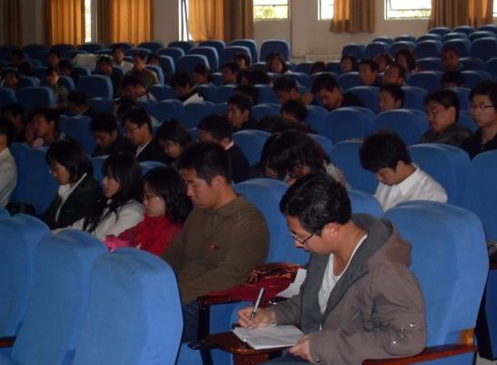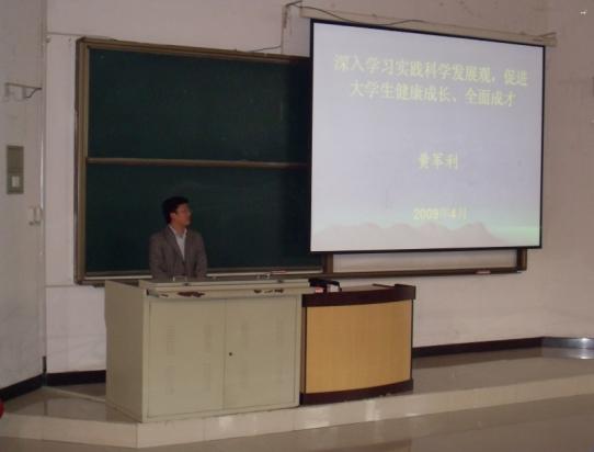 全体学生党员在教二C102参加了学习科学发展观主题报告。本次报告会由外文学院党委副书记黄军利老师主讲,韩国三级