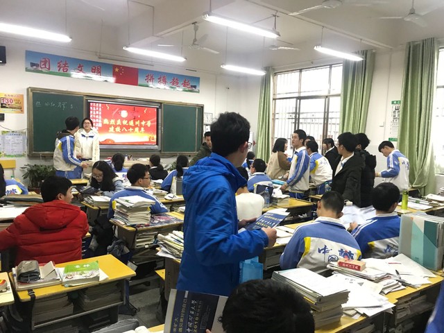 活动分为三个环节,第一个环节是介绍矿大,队长邓榕向高三学子发放了韩国三级