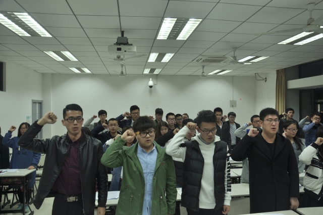 晚七点,活动正式开始。首先,宣策部部员分发了关于雷锋精神的时代意义的资料,让同学们对雷锋精神在当今时代的意义有了初步的了解。其次,志愿服务中心主席赵云将践行雷锋精神具体化,提出学习雷锋精神应坚定立场,学习雷锋同志无私奉献、爱岗敬业、奋不顾身等精神。鼓励同学们积极主动的做好志愿者活动,落实当代雷锋精神。接下来同学们探讨了如何做一个合格的志愿者,并提出做一个合格志愿者需要有团队意识、友爱互助等关键因素。随后同学们进行了志愿者宣誓仪式,铿锵有力的声音表达了尽力做一名合格志愿者的决心。最后学生会主席武文杰进行了总结,他讲到如今社会上仍有病态的现象,例如最近微博上很火的北京地铁事件,告诫同学们要时刻牢记社会主义核心价值观,以健康的心态面对生活。