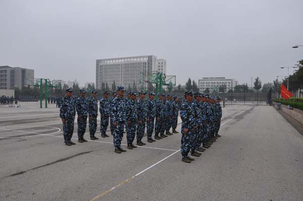9月8日,安全学院新生依然在第三运动场上抛洒汗水,为了在几日后的军训队列会操中取得理想成绩,新生训练的异常认真。