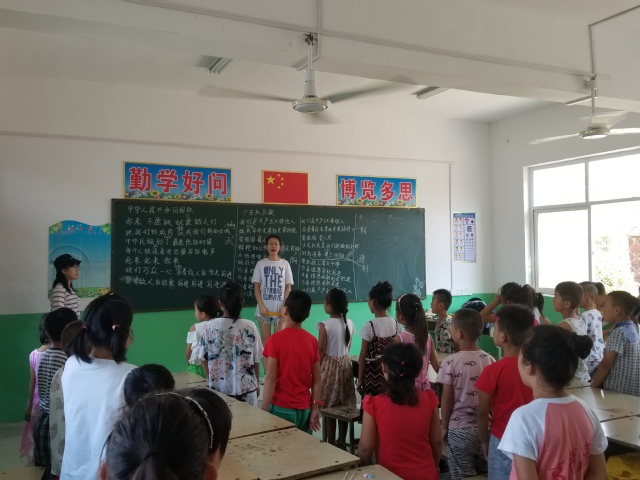 仲夏希望支教团在安徽萧县陶楼小学组织同学们开展爱国主题歌唱课。