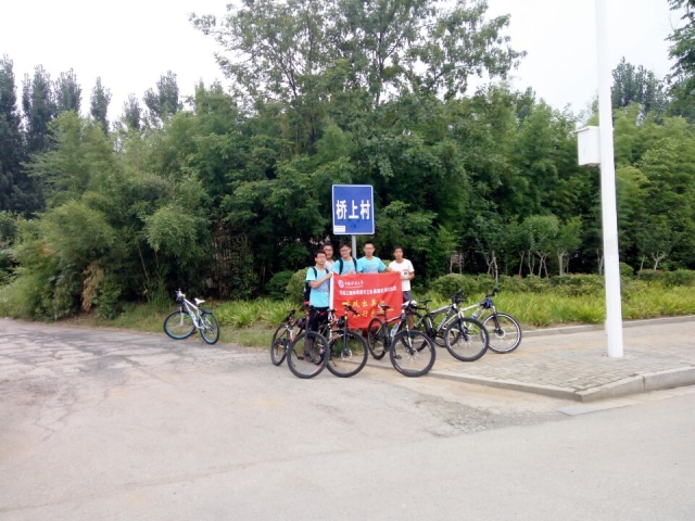 上午10时,全体成员整装出发,秉承着绿色出行的环保理念,全体成员骑自行车前往调查地点桥上村。首先,实践团到桥上村居民委员会向村委会书记了解情况,得到村委会书记的允许和支持。随后,实践团队长徐鹏为大家分配了具体任务。第一小队负责对村里设立的垃圾桶以及生活垃圾处理分布点调查统计。第二小队对村民发放调查问卷,收集数据资料。最后,两支小队汇集在一起对资料进行整理和统计。