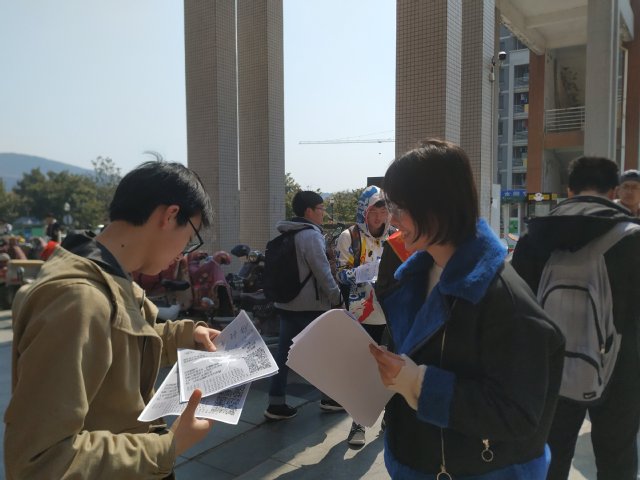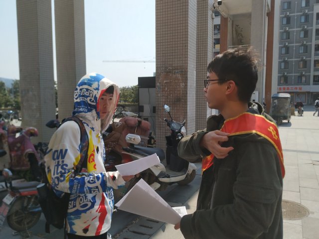 志愿者向同学们宣传活动