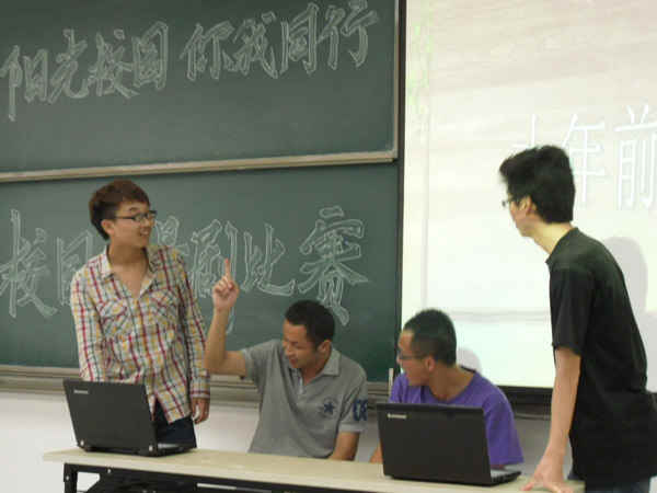 为积极响应校大学生健康教育中心的号召,5月8日下午4:30时,安全学院心理自助中心在教一B201成功举办“校园阳光,你我同行”校园情景剧比赛。安全学院大一、大二各班均参加了本次比赛。担当本次评委的有辅导员李成刚、刘永杰、刘静等老师以及学生会主席郭良军、副主席朱晓宇。