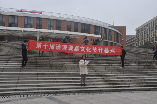 青年志愿者协会志愿者们积极参与“课桌清理文化节”活动。此次活动由机电学院主办,安全学院、资源学院、体育学院等十个学院协办。