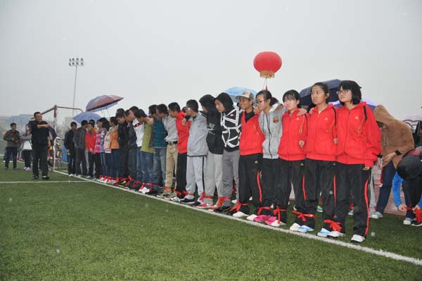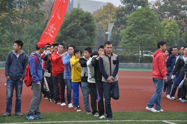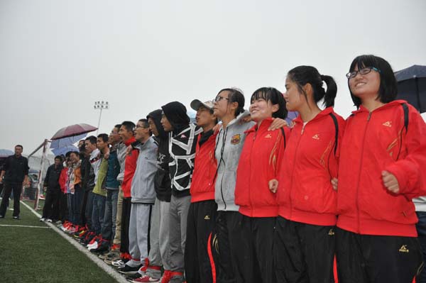 同学们的热情。为了积极准备下午的比赛,健儿们都早早的赶到了集合地点,为了安全学院的荣誉,他们不顾寒风,不顾酷雨,在这样恶劣的环境下依旧坚持训练。他们的脸上充满着自信的笑容展现出敢于克服各种困难的坚毅态度。