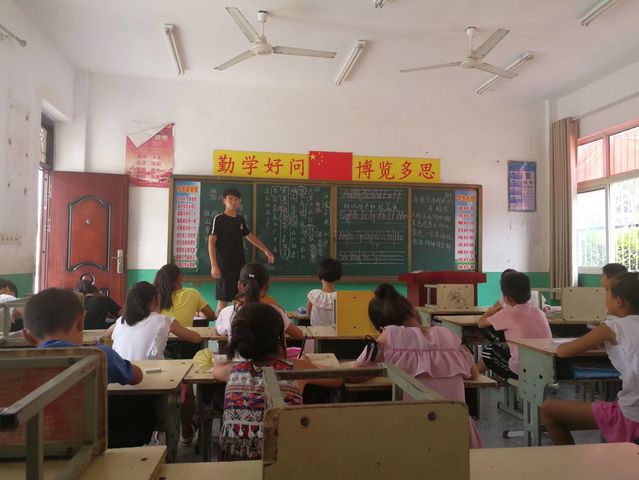“仲夏希望”支教团在安徽省萧县陶楼小学开设国学小课堂,向学生们教授《诫子书》一文。