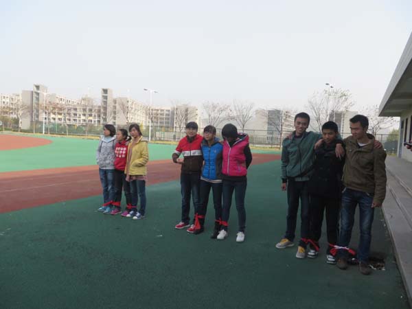本次趣味运动会采取团队比赛形式,注重趣味性,分为夹乒乓球、踢毽、绑腿行走、投篮四个部分。下午2点,趣味运动会开始,第一个项目是用筷子夹乒乓球,一些同学的快速和准确的传递赢得了一阵阵的喝彩,当然期间也不乏有一些“突发情况”,如有队员夹掉了、夹错了,令现场观众捧腹不已。在比赛的第二个环节,许多参赛队员没有掌握踢毽的技巧,把毽子提出了场外。紧接着,三人一组绑腿行走,考验着同一个宿舍成员之间的默契,有的队配合很好,走起来如履平地,健步如飞,但有的队就不那么轻松了,配合不太默契,显得有些费力。随着比赛的进行赛场开始变得紧张。最后进行的投篮比赛更是把现场气氛推向了高潮。一个个的进球使得观众欢呼不已,本次趣味运动会也在观众们一阵又一阵的欢呼声中画上了圆满的句号。