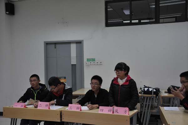 11月9日下午,安全学院院级新生辩论赛在教四C-108成功举办。安全14-02班和14-04班代表队就外来文化对民族文化是利大于弊还是弊大于利这一辩题展开了激烈辩论。13级院辩论队队员张渊和刘文静担任本场比赛的评委,学习部部长张一真等观看辩论。