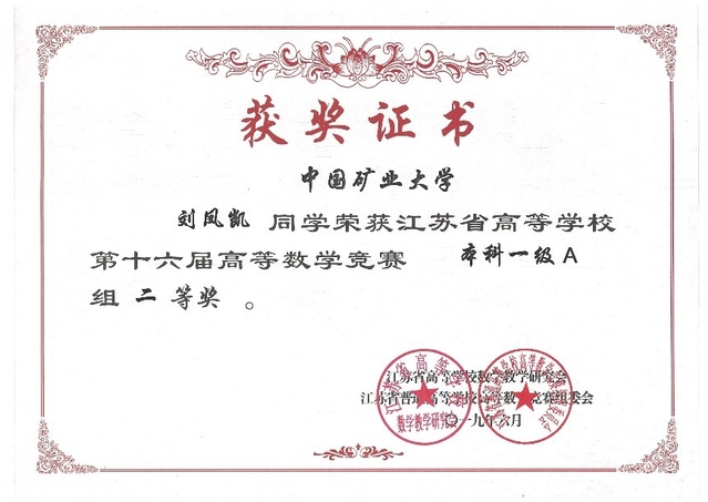 主要荣誉:连续两年获得国家奖学金,江苏省高数竞赛二等奖