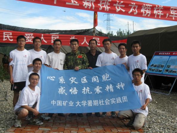 “心系灾区同胞,感悟抗震精神”暑期社会实践团由辅导员孙留涛、陈少松老师带领,作为支援四川灾区重建服务团,在四川重灾区江油市切实开展了灾区服务、定向捐款、座谈走访、心理辅导、义务支教、社会调查等多项工作。在师生们的共同努力下,社会实践取得了丰硕的成果。实践宣传到位,取得了广泛的社会影响,各类新闻媒体都给予了关注,其中市级报道2次(《绵阳晚报》,《现代快报》),中国教育在线、绵阳教育信息网、共青团徐州市委、江油市教育信息网站等网络媒体报道13次。此次活动不仅锻炼了大学生投身社会实践的能力,而且将全校师生的爱心带到了四川,献给了四川人民,受到当地灾区群众的一致好评。