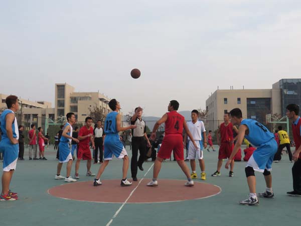 下午四点十分,双方比赛正式开始。开场球的高高抛起,管理学院男篮一开始取得先机,一记远投夺得开局两分;随后,借助着灵活手感也接连得分。与此同时,安全学院队员却手感欠佳,频频失误。随着5号得分后卫贺宏辉制造三分投篮犯规三罚全中,安全学院才渐渐进入比赛节奏,但无奈手感依旧冰冷,安全学院男篮们进入了被动状态,在前两节陷入了苦战。下半场一开始,安全学院突然发力,7号控卫赖泽校接连突破,队员们拼命争夺,将分差不断缩小,状况渐渐回春。比赛进行至第四节,双方都开始进行高强度的身体对抗,安全学院首发后卫贺宏辉在一次抢断中不幸手臂受伤,不得不下场休息,安全学院又开始陷入苦战。然而,贺宏辉同学拒绝离场,简单运动后,又主动要求坚持带伤上阵,为学院贡献得分。随着倒计时结束,安全学院最终没能扳回比分,不敌管理学院,双方进行握手离场。