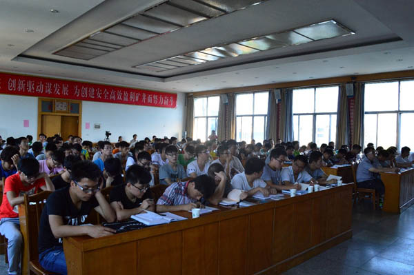 安全学院本科生在张集煤矿进行认识实习。7月30日,实践团和本科生在办公楼会议室举行了一场交流会。