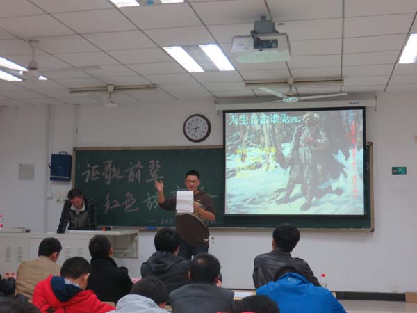 晚7点,主持人介绍比赛流程及规则,比赛正式开始。首先由12-4班田原同学讲述毛泽东的故事。田原同学准备了大量素材,详细地讲述了毛泽东一生的艰辛过往。“前面讲的都是大腕,我来给大家讲一个草根明星”这句来自安全13-2班梁聪同学的风趣话语让同学们回忆起董存瑞的献身经历,感受到他从将士到将领的革命历程。之后曹蒙钰同学幽默风趣的演说将英雄杨子荣的伟大形象深深地印刻在同学们心中,那位有土匪潜质的战士,为剿匪事业做出了不可磨灭的贡献。紧接着靳振铎同学对英雄杨靖宇的仰慕之情把故事会带入高潮。一阵阵激情的演讲赢得场下观众经久不息的掌声。洪亮的声音,声情并茂的讲述,让热血的革命气息弥漫开来。随后,选手们用故事将我们带入那个红色的年代,在讲述故事的同时,将心深深地融入到红色革命中,感受老一辈革命家的品德意志,从中汲取力量,更加珍惜当下的美好时光。