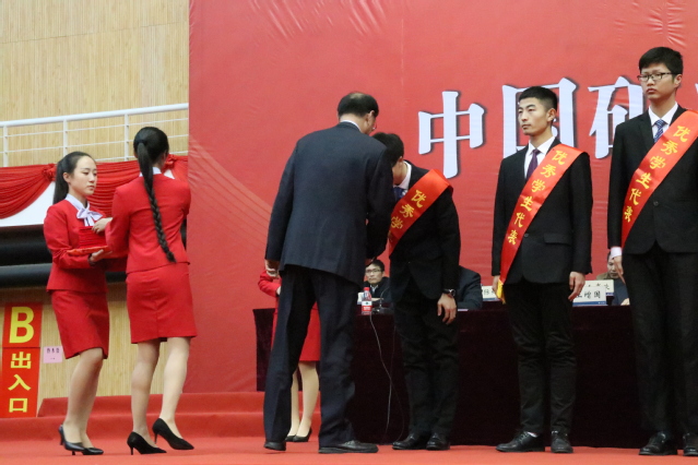 下午3点,表彰大会在嘹亮的国歌声中拉开帷幕。副校长周国庆宣读研究生和本科生表彰决定,并由校领导为优秀班集体、优秀学生干部等学生代表进行颁奖。其中,安全学院2015-2班荣获省级先进班集体、校红旗班集体称号;2015-4班荣获校级先进班集体称号;安全学院奚修齐荣获省级三好学生称号;陈子贤、宋姝丽荣获校级优秀学生干部、校级优秀学生称号;安全学院辛杰荣获国家奖学金。