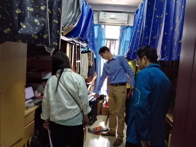 检查主要将重点放在宿舍违章电器、宿舍宠物、阳台堆放杂物情况,并对宿舍禁烟情况进行核实。钱书记与辅导员老师自底楼起分别进入各个宿舍,彻查各宿舍安全状况。对于存在安全隐患的宿舍,检查组及时提出整改意见并要求学生立即执行,排查安全隐患,学生配合情况总体良好。