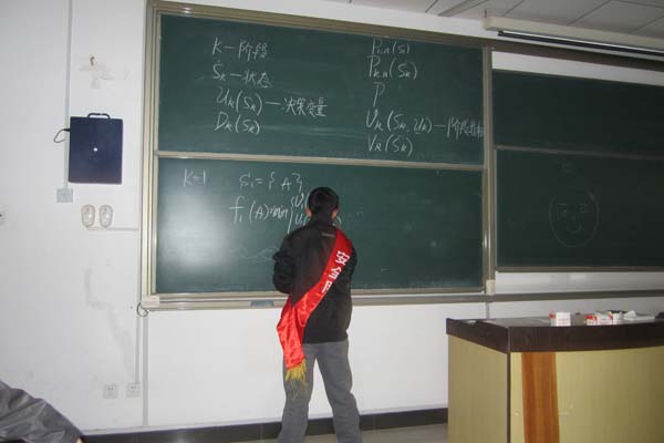 下午三点五十,各个学院的负责人和参与活动的人员在教三大厅集合,分配完任务以后,各个学院分别前往自己负责的公教区。安全学院服务分队队长任青刚和副队长詹磊带领学院服务分队B组成员前往二教进行清洁工作。队员们对讲桌,黑板和黑板下方的凹槽均进行了清理,并将教室里面的灯关闭,以免浪费资源。