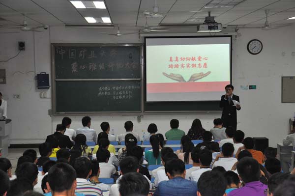 晚上七点,会议在安全学院服务分队队长杜长州对爱心班级一年的工作回顾总结中拉开了帷幕,“爱心班级”活动最早是由安全学院服务分队提出,并在全校得到广泛响应的献爱心活动,至今已经经历了五个春秋。今年的“”爱心班级“的在校学生工作处的悉心指导下也取得了骄人的成绩。其中,大会共对在全校表现突出的十八个班级进行了表彰。其中安全13-2班、行管12-1班和会计13-3班通过自己班级同学的共同努力获得了一等奖,获得二等奖的是安全13-4班、工设13-3班、机械13-9班、金融12-3班、会计13-1班和英语13-3班,另外还有九个班级获得了三等奖。