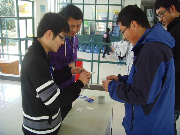 为了解决同学们因校园卡丢失后无从找寻的难题,党员工作站细心制作并在梅三一楼大厅现场派发了“爱心标签”。爱心标签可以贴到校园卡上,上面可以写上自己的联系方式等信息,从而便于校园卡的归还。从活动开始,前来贴卡的同学络绎不绝,同学们对于这一服务同学的活动表现出了很高的热情,党员工作站的党员们耐心的为同学进行着卡片的粘贴,不到一个中午的时间,卡片就全部发送完毕,本次活动至此圆满结束。