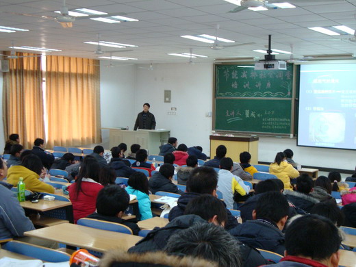 两点三十分,教室里已经座无虚席,讲座正式开始。翟成老师首先以近期召开的哥本哈根气候大会为切入点,着重强调节能减排的重要性。然后,他从我国的基本国情出发,通过能源人均占有量、单位产值能耗等方面与发达国家的比较,指出了节能减排的必要性。接着,他又从我国煤矿抽才煤层气利用现状、石油进出口现状、城市空气质量、城市空气质量达二级城市比例变化、城市空气污染严重、土地沙漠化加剧等方面指出我国面临的严峻形势及节能减排的紧迫性。紧接着,翟博士向同学们简要介绍了社会各个方面在节能减排行动中采取的措施。最后,他就如何写调查报告对同学们进行了指导。他告诉同学们要做到“去粗存精,去伪存真,图文并茂”,并注意突出自身的特色,不要人云亦云。