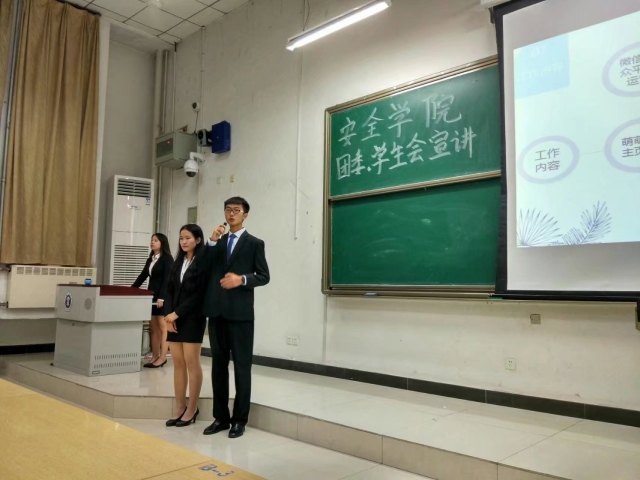 团委学生会招新宣讲会在教二C201举行,学院团委学生会主席、副主席、各部门负责人以及韩国三级