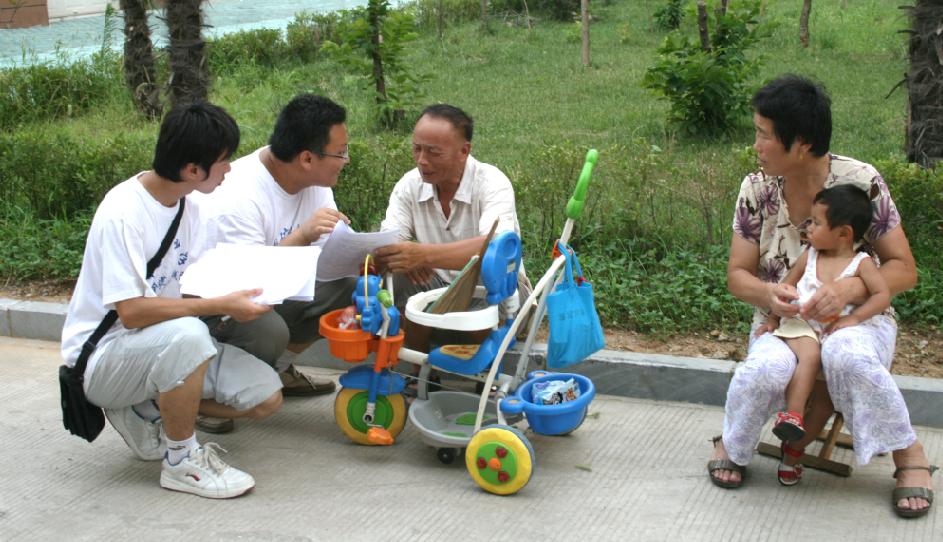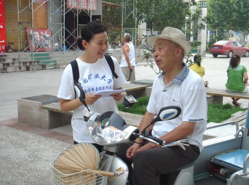实践团成员兵分几路来到铜山县周边的居民区、街道等,对不同年龄、不同阶层的人随机调查,旨在了解普通群众对铜山县这些年来教育发展情况等方面的关注和认识程度。