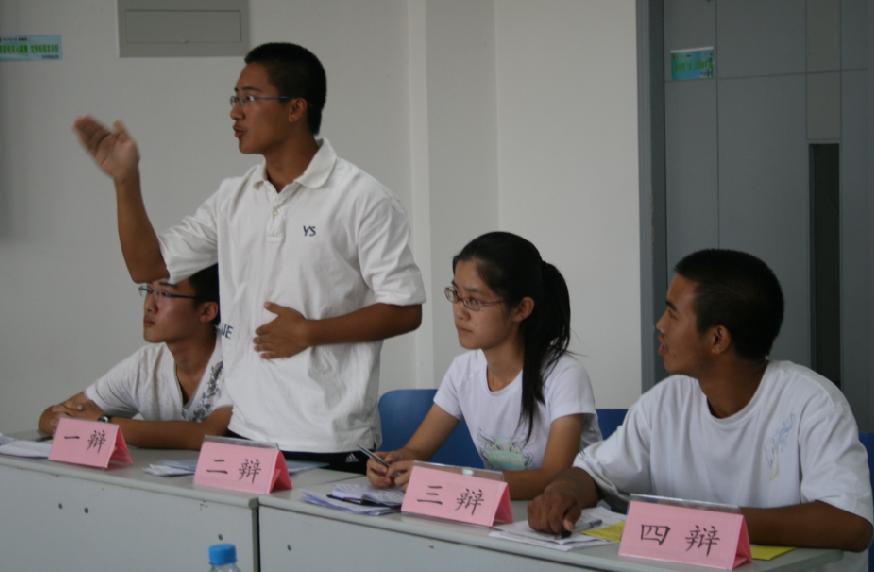 辩论赛分为两场,分别是安全09-1班对阵消防09-1班、安全09-2班对阵安全09-3班。赛制为四对四辩论赛。辩题分别为“大学生应该谈恋爱,还是不应该谈恋爱”、“善心是真善,还是善行是真善”。