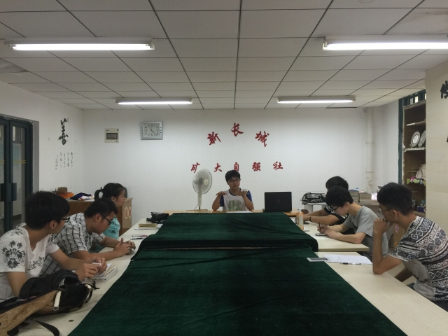 上午8点30分,自强支教队所有成员准时到达会议办公室。首先,队长吴朝鹏向成员们介绍了本次支教的地点,时间,物资情况等内容。由于时间处于八月中旬,大部分小学尚未开学,关于支教地点仍存在一些问题。紧接着,队长对支教任务进行了详细分工。本次支教共开设音乐,趣味体育,人文自然,手工等6门适合于小学生的课程,各门课程由1名成员主要负责授课。在明确分工之后,吴朝鹏指出,此次支教的重点在于加大宣传力度。除此之外,支教队对本次支教的特色活动腾讯公益,趣味运动会以及捐赠仪式进行了筹划。