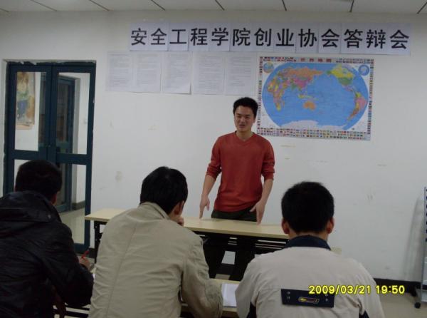 3月21日晚7:30,“安全学院创业协会答辩会”在梅三5楼活动室召开。此次答辩会的目的主要是招选创业协会主席、副主席,有意愿参与评选活动的同学前来参加答辩。