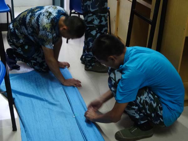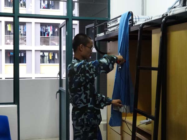 为了更好地迎接新生军训的第一项评比内容――全校新生宿舍内务检查, 9月12日晚,安全学院2013级新生提高效率、注意方法,并以军人为榜样严格要求自己。为荣誉备战次日的内务检查。