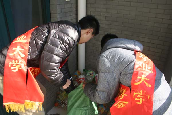 安全青协被分到梅二宿舍楼,青协部员王晨宇、刘昱君等分成三个小组回收。每到一个宿舍,他们都是礼貌地敲门,说明来意,解释“自强社爱心宿舍”回收活动。爱心宿舍的舍员也都热情地捐出自己宿舍的塑料瓶、废纸箱等。经过一个多小时的奋斗,安全青协总共收集了八百多个瓶子,还有几件衣物。虽然不停地走上走下送整袋的瓶子,但他们没有觉得累,笑容一直都挂在脸上。这或许也正是青年志愿者的真实写照,帮助他人,无私奉献;赠人玫瑰,手有余香。