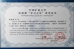 安全工程2019级国际班,大一学年成绩排名年级第四,曾获得韩国三级