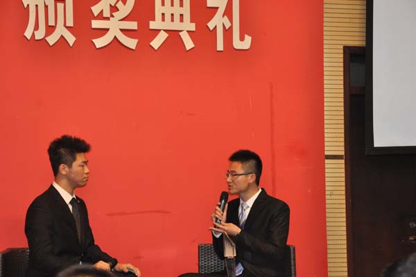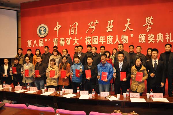 第八届“青春矿大校园年度人物”及提名奖获得者的通知》。紧接着,各位获奖同学上台领奖。其中,安全学院的王鹏飞同学给人留下了十分深刻的印象。颁奖现场播放了王鹏飞的个人宣传视频,充分展示了他甘于奉献,关爱他人的高尚品质,随后,主持人通过现场访谈的形式,使在场的观众更加了解了这个朴实而伟大的少年。当被主持人问道为什么会有“关爱留守儿童”这个想法时,王鹏飞同学表示自己不愿意看到现在还有那么多像自己小时候一样的留守儿童,希望那些孩子们能够健康快乐的成长。王鹏飞同学用自己的实际行动,唤醒了许许多多留守儿童内心的希望,当儿童的心中再一次点燃爱的火光时,他们便不会孤单,勇敢面对生活,追求自己的梦想。王鹏飞同学彰显的是矿大安全学子的风采!在颁奖典礼的最后,获奖者与到场领导合影留念,颁奖典礼落下帷幕。