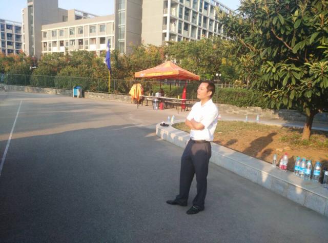 下午五点,孙老师在梅南运动场和参赛新生见面。首先,他对同学们十多天来的努力训练表示肯定,也表扬了在场各位军训期间坚持练唱红歌的耐劳精神。其次,他说,红歌比赛不仅是军训活动的一部分,还是以一种文艺的形式表达我们的爱国之情,每个人都应该认真对待这次比赛,坚决反对掉以轻心、不在乎集体荣誉的行为。随后,他告诉大家,在比赛中要放平心态,减小紧张心理带来的负面影响,努力发挥出自己的最好水平。孙老师鼓励全体参赛新生,要以积极昂扬的斗志面对这场比赛,每个人作为团体的一分子,都应该与集体荣誉与共,同时给自己多日来的训练一个圆满的交代。