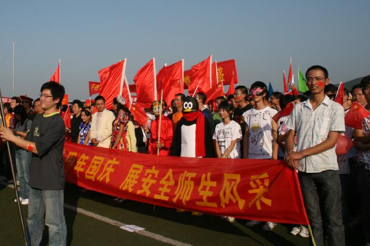 下午,我校一万多名师生参加了在南湖校区举行的“庆国庆迎校庆 校园万人巡游”活动。在院党委书记章毛平、院党委副书记李金明以及各年级辅导员老师的带领下,广大学生积极参加“庆国庆迎校庆 校园万人巡游”活动。