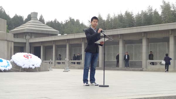 下午两点四十分,活动正式开始。首先奏响中华人民共和国国歌,然后由党员代表敬献花圈,而后默哀一分钟,向那些在腥风血雨的战争岁月里抛头、洒热血、舍生取义的革命烈士表达最崇高的敬意。默哀完毕后,由党员工作站站长李先赞同志发表讲话。他表示,我们不能忘记为了实现崇高的理想,捍卫民族的利益而流血牺牲的革命先烈。同时,我们应懂得幸福的生活来之不易,应树立远大的理想,高举邓小平理论伟大旗帜,坚定拥护“三个代表”重要思想,落实科学发展观,用我们日渐成熟的双肩挑起建设祖国、保卫祖国的重担;用我们的双手实现自己的、民族的、国家的中国梦。最后,党员同志瞻仰陵园,分批参观淮塔纪念馆,活动正式结束。
