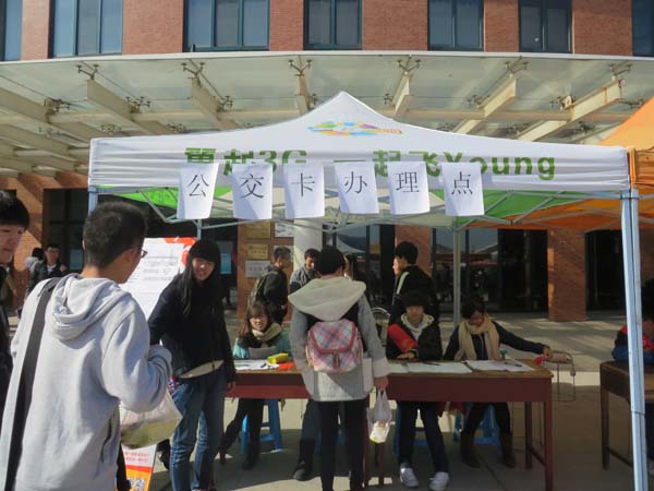 活动一开始,就吸引了很多同学的目光,同学们纷纷停下匆忙的脚步,到活动的服务站台前询问具体情况。经过青年志愿者们的耐心讲解后,很多同学表示出了对这个活动的赞赏,并积极地参与其中。很短的时间内,就已经有十多位同学在申请表上签了自己的名字。活动如火如荼的进行着。志愿者们不厌其烦一遍又一遍地向不断咨询的新同学介绍公交卡的功能,并指导同学们有序的办理公交卡。此次活动在同学们满足的笑脸中成功举办,相信此次活动定会帮助不少的同学减少坐公交车所遇到的麻烦。