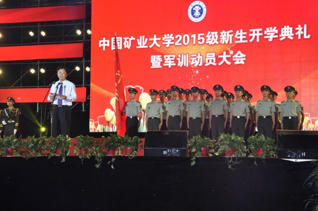 党委副书记曹德欣主持,校长葛世荣等领导以及院士均出席现场。校长上台葛世荣致辞,他向在场全体新生介绍了矿大的历史,教育理念以及专业特色,并对同学们提出了希望与祝福,葛校长生活活泼的语言赢得了台下阵阵掌声。接着,各学院领导发表讲话,安全学院党委书记章毛平侃侃而谈,他以饱满的热情鼓励15级的新生们学好专业知识,在大学的广阔蓝天下尽情翱翔。同时,安全学院学生会主席崔捷也与全校新生见面。仪式最后,曹德欣书记宣布2015级学生旅组成,并授军训旅旗。随后,同学们在活跃的气氛中观看了新生文艺演出,安全学院“十佳歌手”哈森为大家献上歌曲串烧《胜利之歌》,博得现场一片喝彩。