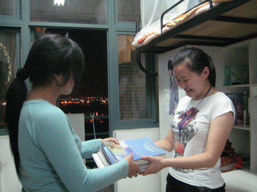 党员工作站专门建立了一个“废旧书籍回收站”,通过这个渠道把同学们手中的废旧的教材和过期的书刊杂志都“变废为宝”。党员工作站的学生党员在接受同学们的图书捐赠后,再把图书进行归类整理,全部寄存在党员活动室。平时党员活动室都有党员值班,同学们去阅读这些书籍就会很方便。