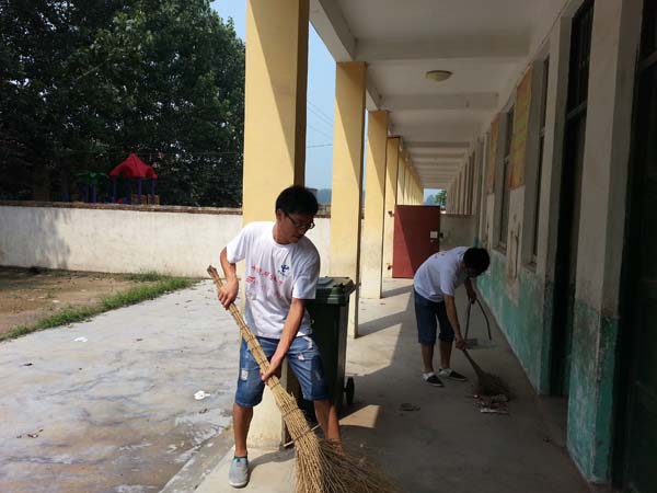 在接下来的三天中,实践团的成员们深入每一间教室,对教室内的环境进行了打扫,并且对教室内的板凳、桌子、讲台等基础教学设施进行了修理。稍后,队员们分成几个小组,对学校的图书室、科技仪器室、微机室、体育活动室进行了打扫,并对一些破损的设备进行了简单的修复。临走之前,队员们又将学校内的卫生进行了打扫。