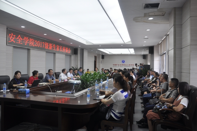 ,即学院师资力量、发展方向、培养特色和学院对学生的管理方式,并表示希望家长配合一起把孩子管理好。接下来的家长提问环节中,不少家长表示当初填志愿比较辛苦,学生来到矿大表示很荣幸,矿大环境很好,同时也希望老师严格要求,希望孩子在学校能够学到有用的东西,其中一位家长感慨道:“我很遗憾自己没有在这么一个良好的环境中接受教育,希望我的孩子能够在这里好好发展。”提问过程中,章书记和钱书记也对家长们的疑惑进行一一解答。随后于基伯老师和钱雄书记分别介绍了安全学院毕业生就业概况和本科生在校奖学金概况,并强调就业是不用担心的,奖学金也是有很大机会获得的。接着,章书记向家长们介绍了徐州的汉文化、战争文化、生态文化和饮食文化,并推荐家长在徐州期间去参观学习。会议最后,王恩元教授介绍了安全学院的实验室和各种平台以及研究方向。