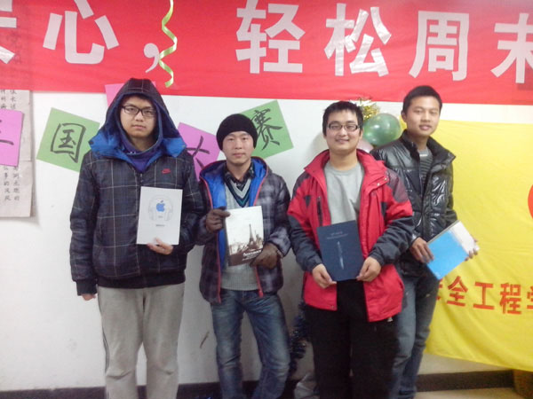 12月13号,安全学院心理自助中心在梅三一楼活动室举行学生会部员团辅之三国杀大赛。最终,经过激烈而愉悦的比赛,安全12-3班的张豆和童天润同学获得此次比赛的冠军。